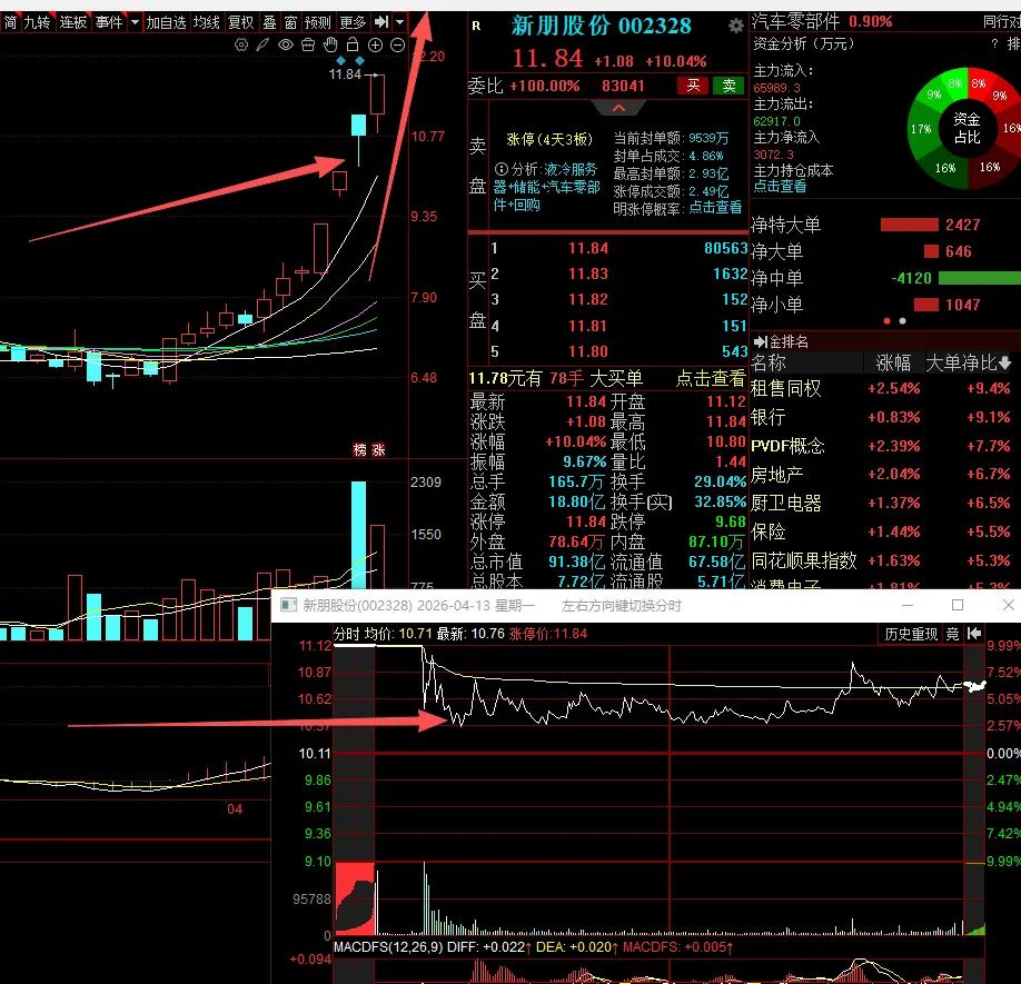 只做龙头:行情越走越火爆,超级龙头行情俗称牛市主升浪马上启动,昨天低吸的新朋股份再次涨停.
