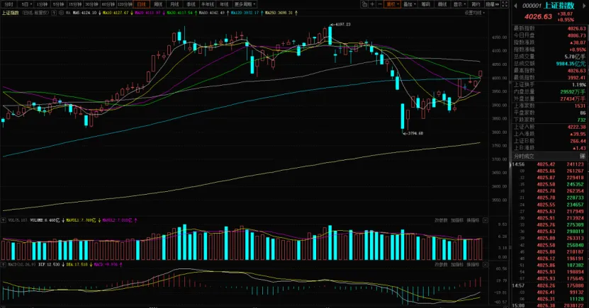 今天指数走的比较纠结,但下午在金融、锂电等拉升后距离近几天说的4032.56已经比较近了。