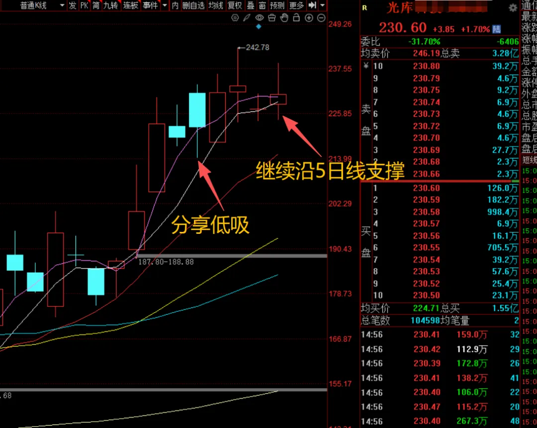可以看到华华分享的奥士K ,科创芯片ETF 光库KJ 光迅KJ ,都符合5日承接的条件。