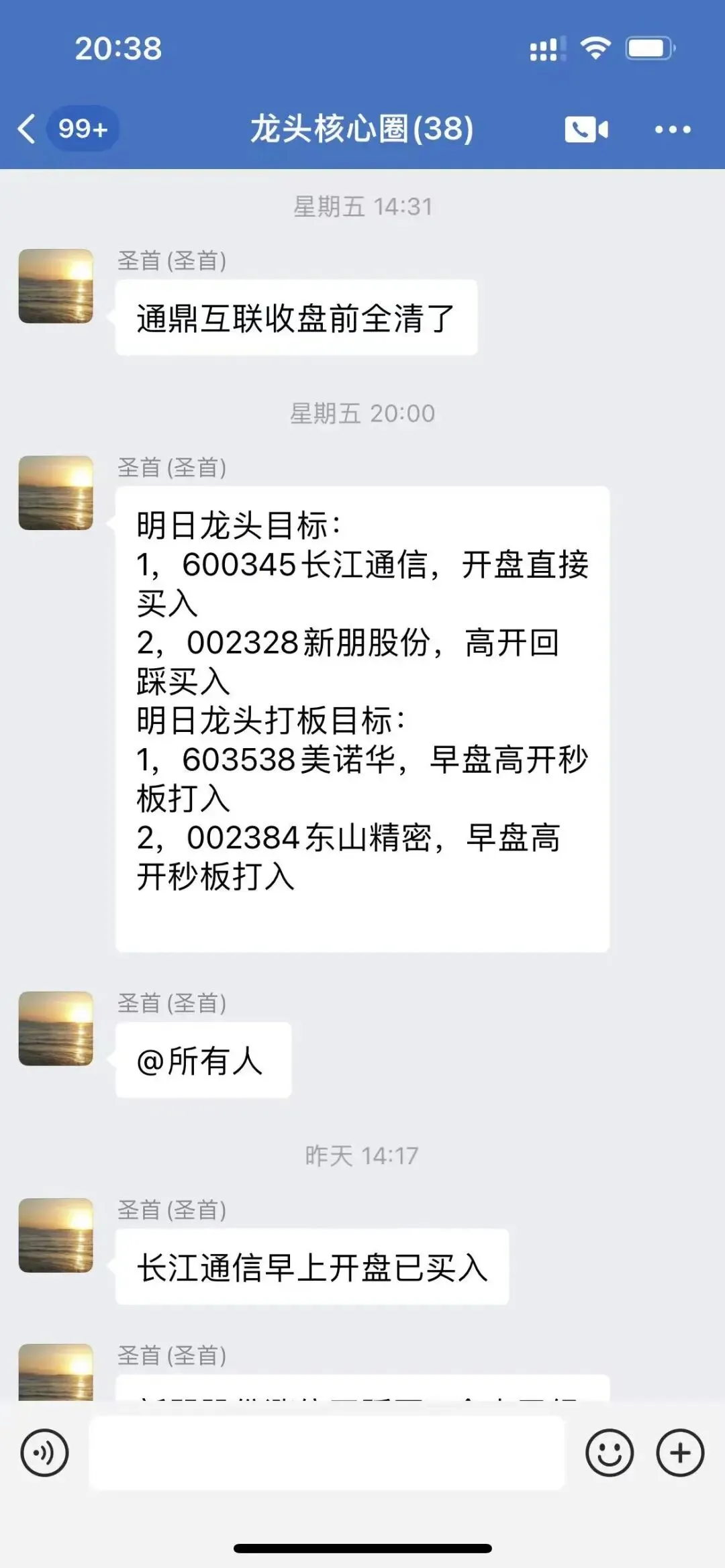 长话短说,讲一下接下来的剧本走向,首先大盘这波回踩3800后非常强势反转,大概率是接下来半年的最低点,除非美伊战争再度爆发升级才会快速跌穿3800往3700看支撑,但是大概率不会出现这种情况。大盘站上4000点后,真正的连板龙头行情很快就会出现。所谓的龙头行情,就是8连板,9连板,10连板的龙头满天飞,和2024年10月11月一样,超级强劲的赚钱效应。因为这波牛市走到现在已经走了一半,赚到钱的该走的已经走了,没赚到钱的也基本套在各种各样的股票上面,这种背景下是最容易刺激市场爆发超级行情,也就是牛市中的加速主升浪。如果经历过2015年牛市的都应该记得当年中国中车,连这种几千亿市值的股也能在短短一个月内涨三四倍,还有当年的暴风影音,连续33个涨停板应该是A股连板记录了。这波牛市会将15年所有最高记录全部打破,我现在就可以断定,毕竟时隔10余年,当下的资金体量和市场规模都完全不是一个档次了,包括庄家的手法以及市场风格都发生了翻天覆地的变化,但是唯一不变的依然是人性和反人性,散户越高越不敢买,但是股票是越高涨得越强,当然这种行情和99%的散户都没有关系。最后简单讲一下近两天的操作,上周四买入的通鼎互联当天大涨次日低开低走小幅止盈出局。本周一也就是昨天开了两个新仓分别是长江通信和新朋股份,长江通信是开盘直接买入,新朋股份是涨停开盘,盘中回踩至4个多点买入成交,今天长江通信在负5左右止损掉,新朋股份开盘快速涨停继续持有。跟我操作必须要全跟,不要只跟一个漏掉一个,这样很容易你吃面我们吃肉,做龙头要有容错率,毕竟没有任何一个人可以做到100%的成功率,我能把成功率做到80%——90%已经超越了全网99.99%的选手,能看懂我的人极少,因为我重来不营销也不会做互联网,不会玩那些花里胡哨的东西,来到这个市场目的只有一个就是为了赚钱,愿意带一群铁粉完全也是出自于内心的善良,部分人觉得我收这几千块很多,我可以很负责地告诉大家,很多时候我一天的账户收益比我十年收的服务费都要多。(全新的操作模式,每晚提前给出次日目标股,开盘直接买入无需思考,经过近20年的不断总结完善,从以前的半路追,到打板,到现在盘前提前确认,开盘直接买入,每日单吊一到两个,成功率接近90%,全网最强龙头选手没有之一,秒杀抖音99.99%假大V。)天策核心群订阅时长:(年度收益不足一倍全额退款)