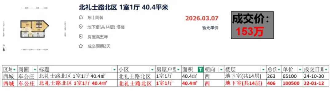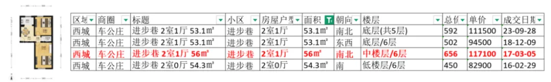 这几组数据一对比,车公庄老小区的行情一目了然。