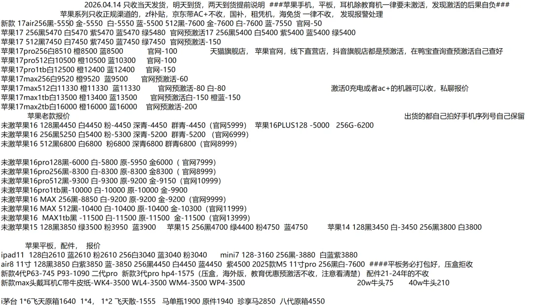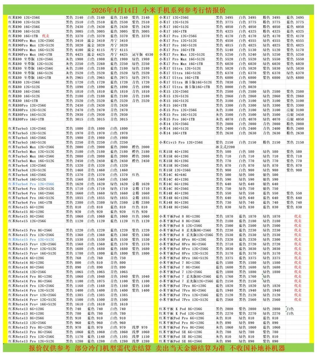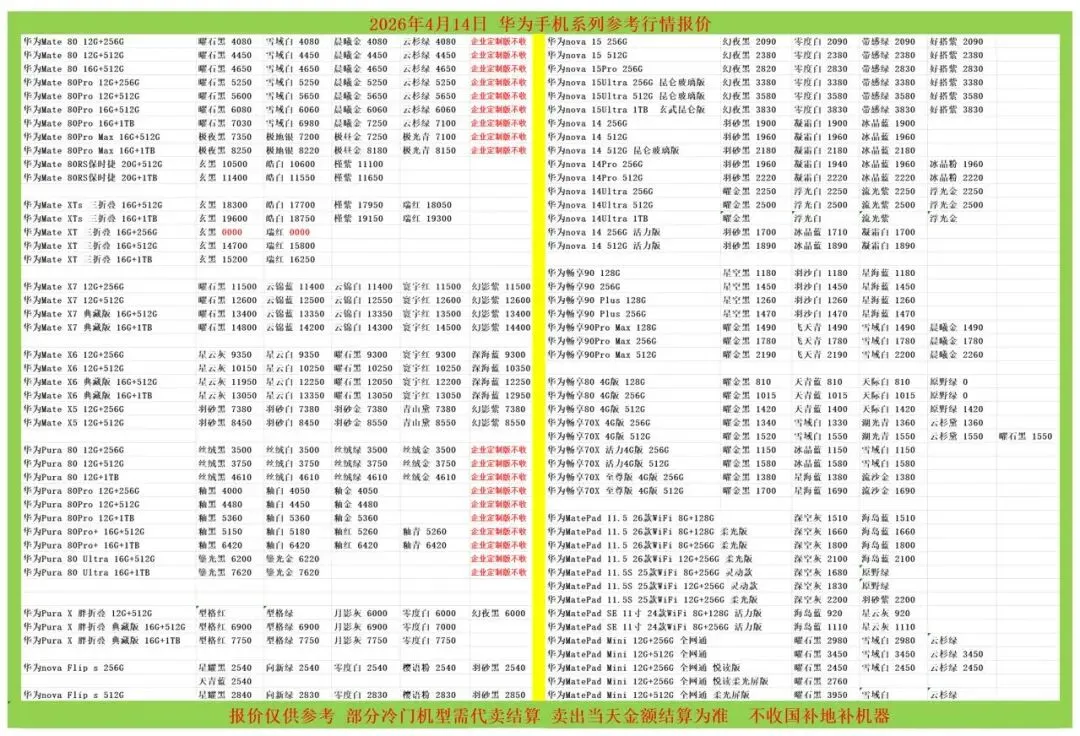 (1)二级市场为自由交易市场,价格实时波动,可能每个小时的卖价都不一样,此报价为华强北市场收货参考行情,实际结算价见公众号:鸟哥撸货数码结算价。