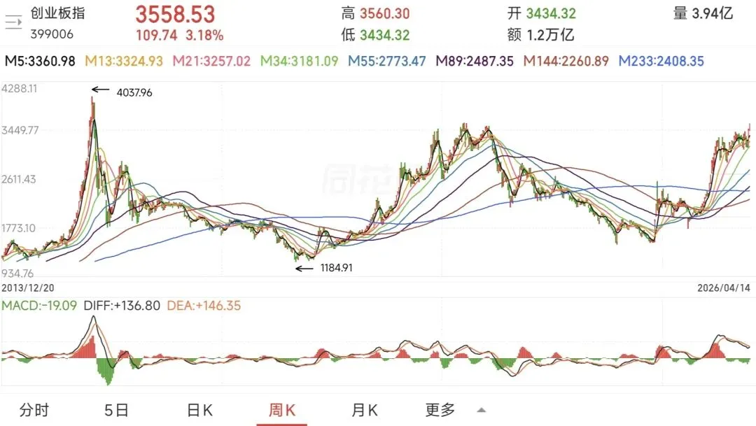 但是这几天创业板几次新高,马上要超过21年的高点,只有一步之遥,大盘也回到了4000点,并且站在了4015这个阻力点上沿之上;特别是下午的拉升伴随了一部分放量,成交量又回到了接近2.5万亿左右,战争的影响的确开始逐渐免疫。。。