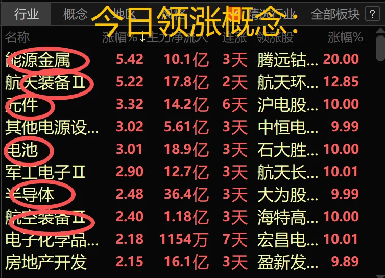 以及航天卫星和Jun工、能源金属、新能源和电池这些,继续轮涨。