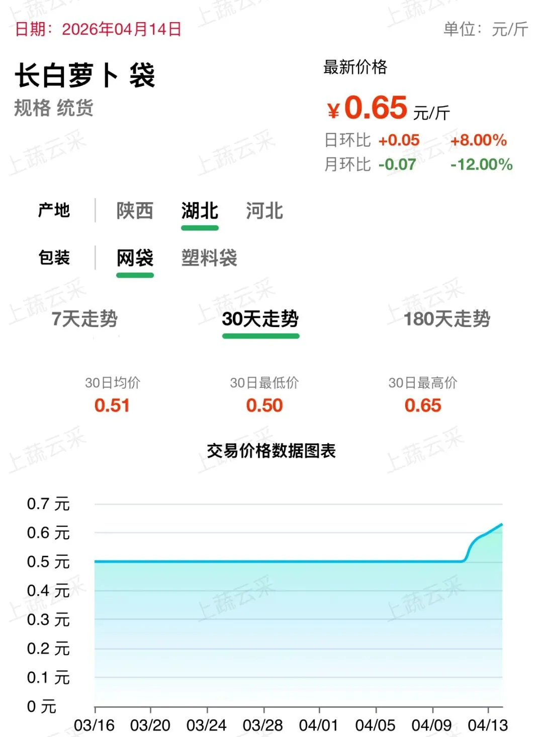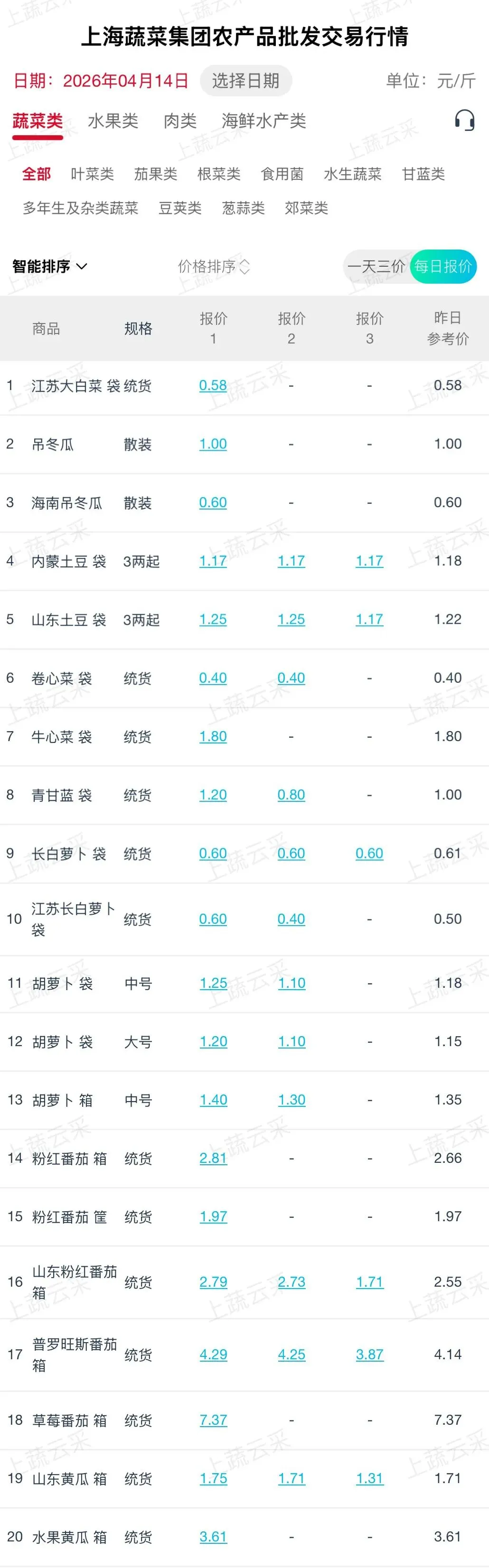 蔬菜、水果、肉、海鲜水产等更多品类交易行情