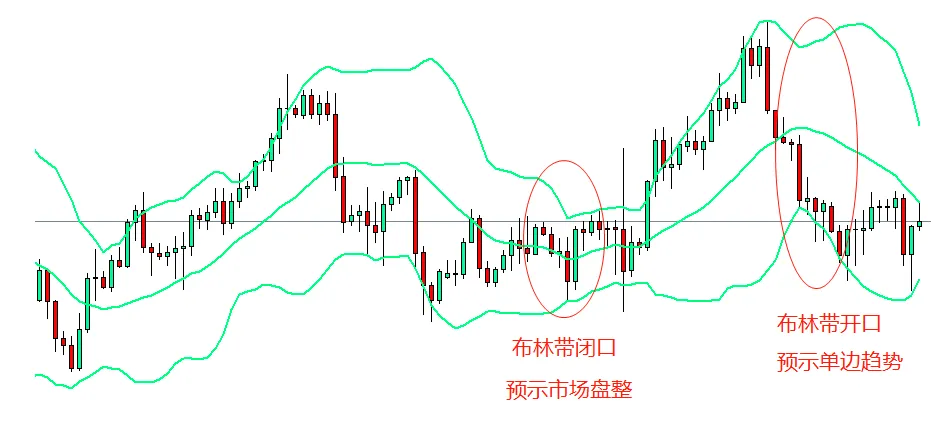 - 当轨道向两边张开的时候,表示市场可能处于单边趋势。