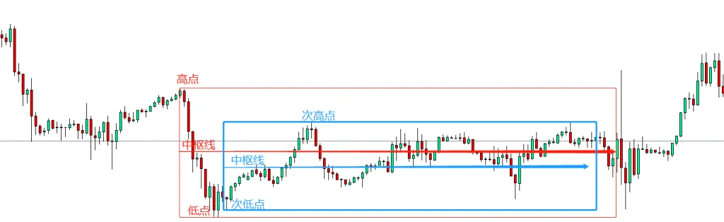 所谓的箱体震荡是指震荡行情的高点和低点形成的长方形类似箱体。箱体震荡的中枢水平是指震荡行情高低点的中线。