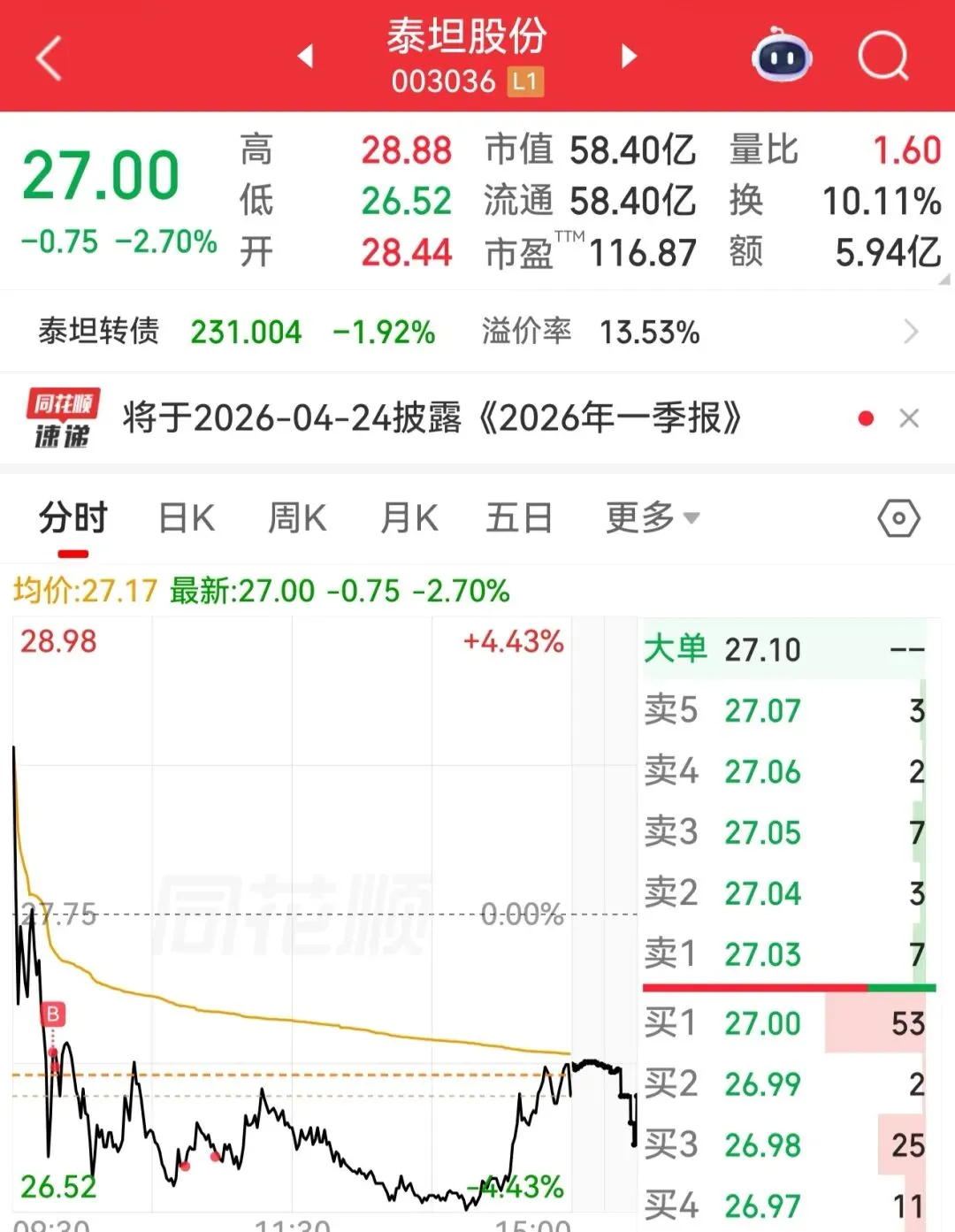 但是今天大盘那么好,手上的票居然没任何行情。只能明天看看有没有机会出掉了。