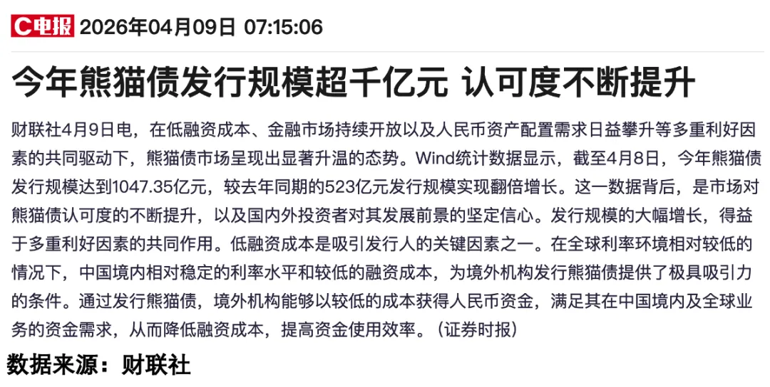 对于A股来说,冲突从来不是这轮行情的底色,但是流动性的考验却是实实在在的,最近有条新闻大家可能不注意,就是一季度我们的熊猫债发行,创下单季历史新高。说明越来越多的跨境贸易,正在转变成用RMB结算。背后代表的是贸易链条在重构,产业链在重排,和我们做生意的国家体量越来越大,频率越来越高。