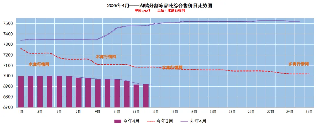 截至今天,具体来看,边腿/鸭腿正常3.8/4.8上下,高点4.0/5.0,低点3.5/4.5;单冻鸭胸目前正常报价8.3-8.5上下,低点8.2上下,高点8.6;鸭胗M正常17.2-18.2区间上下,高点18.5上下;鸭胗S高点17.7上下,正常价格基本在17.0-17.5上下;5脖正常3.5-3.7上下,高点3.9;二节翅L正常9.3-9.8上下,高点10.0;二节翅M正常7.3-7.6上下,高点7.9,低点7.0上下;鸭翅根L高点4.3,正常3.8-4.0区间上下;鸭锁骨正常报价7.0-7.4上下,低点6.6上下;鸭头8低点在18.0上下,正常19.0-20.0区间上下。