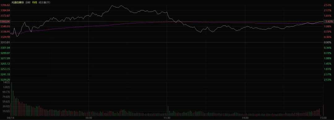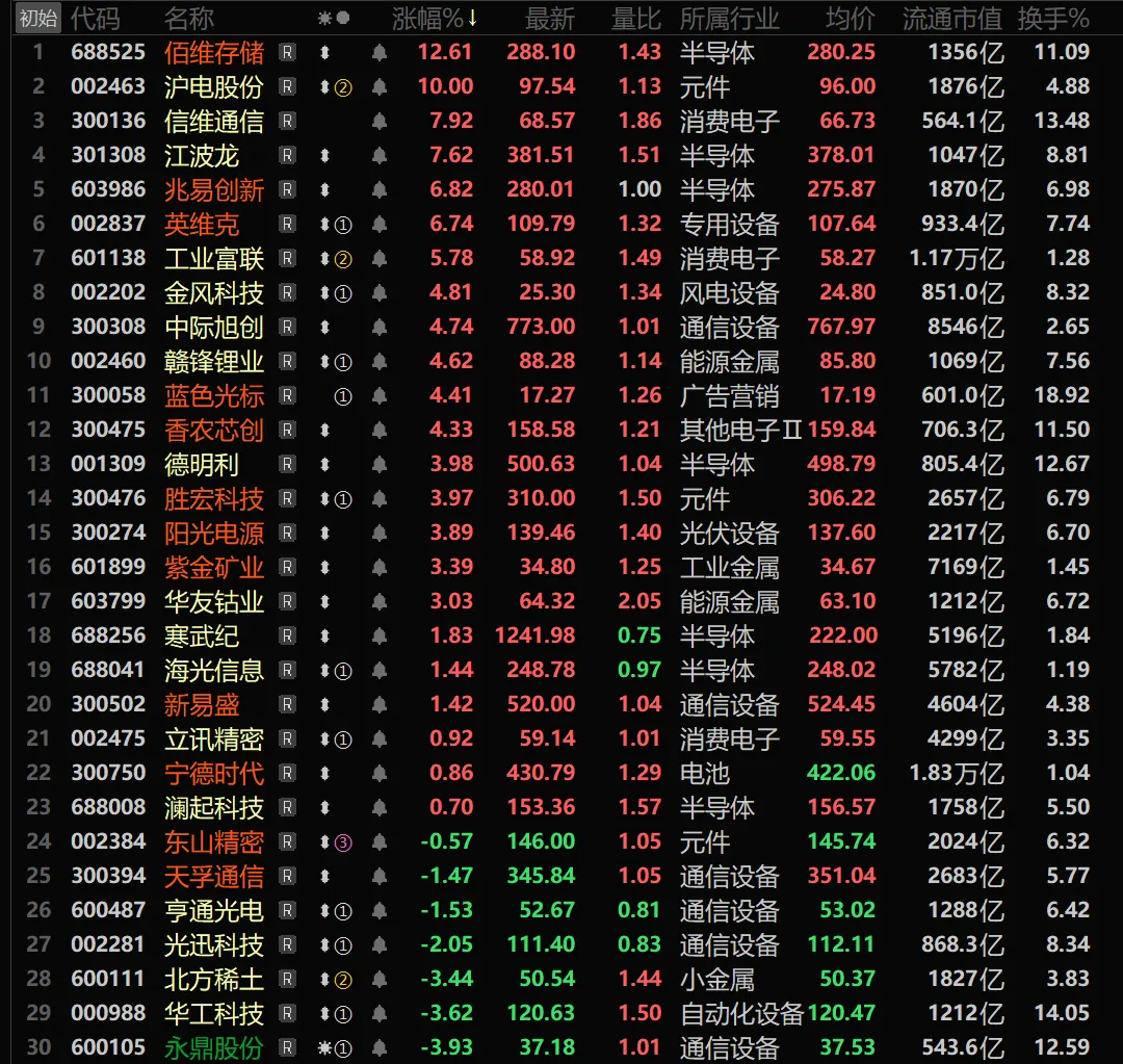:这里开的肯定是低于预期的,指数高开,宁德时代居然是低开的,根本比不上新易盛和中际旭创,但是下午的时候指数这一波的拉升,拉的是电池方向,那么每天的预期就是光通信和存储可能调整,电池可能会接力。