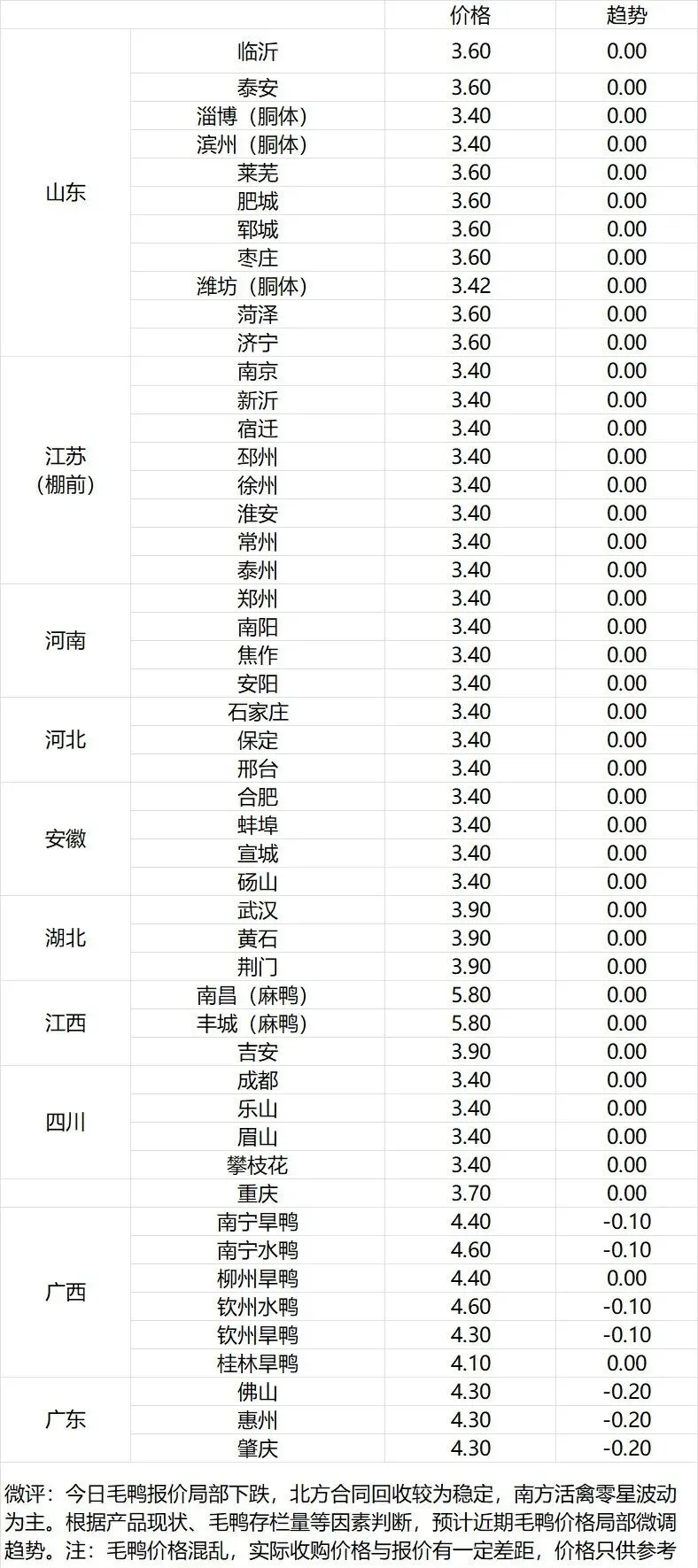 【水禽行情•4-15】苗再跌;特价单品库存多点已转移,局部转向走强!关注超底单品!