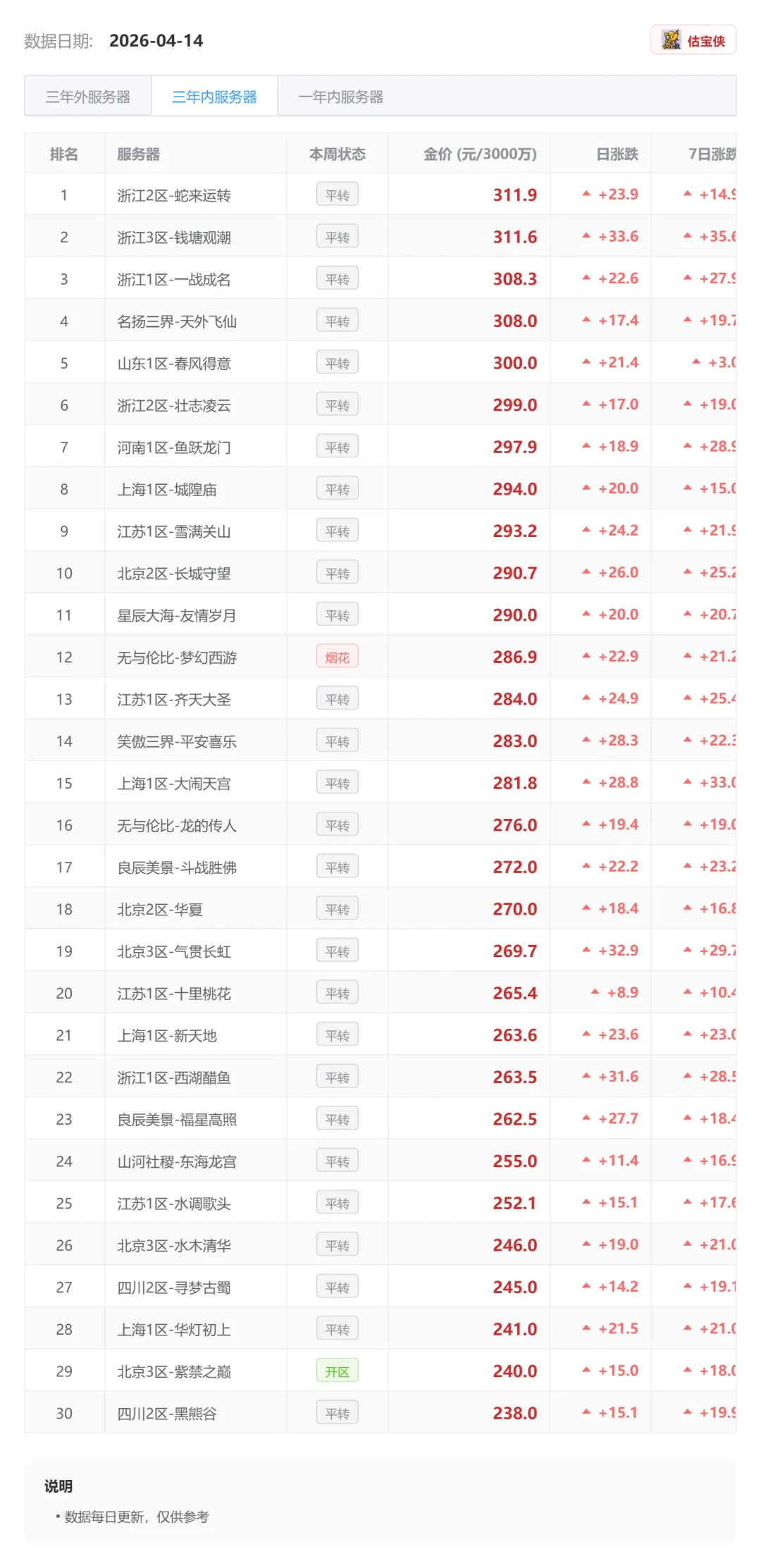 五、175等级段:高端稳,中端活跃化圣九上涨2.7%,宝宝修80上涨4.1%;七修及顶级强壮号整体稳定。说明高端号支撑较强,中端配置更活跃。