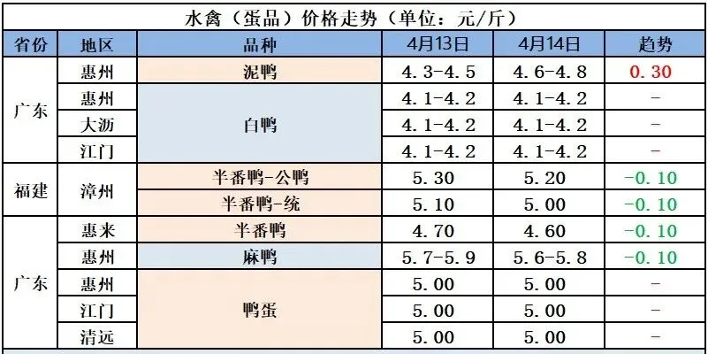 4月14日南方桂柳广东区域毛鸭报价(元/斤) |