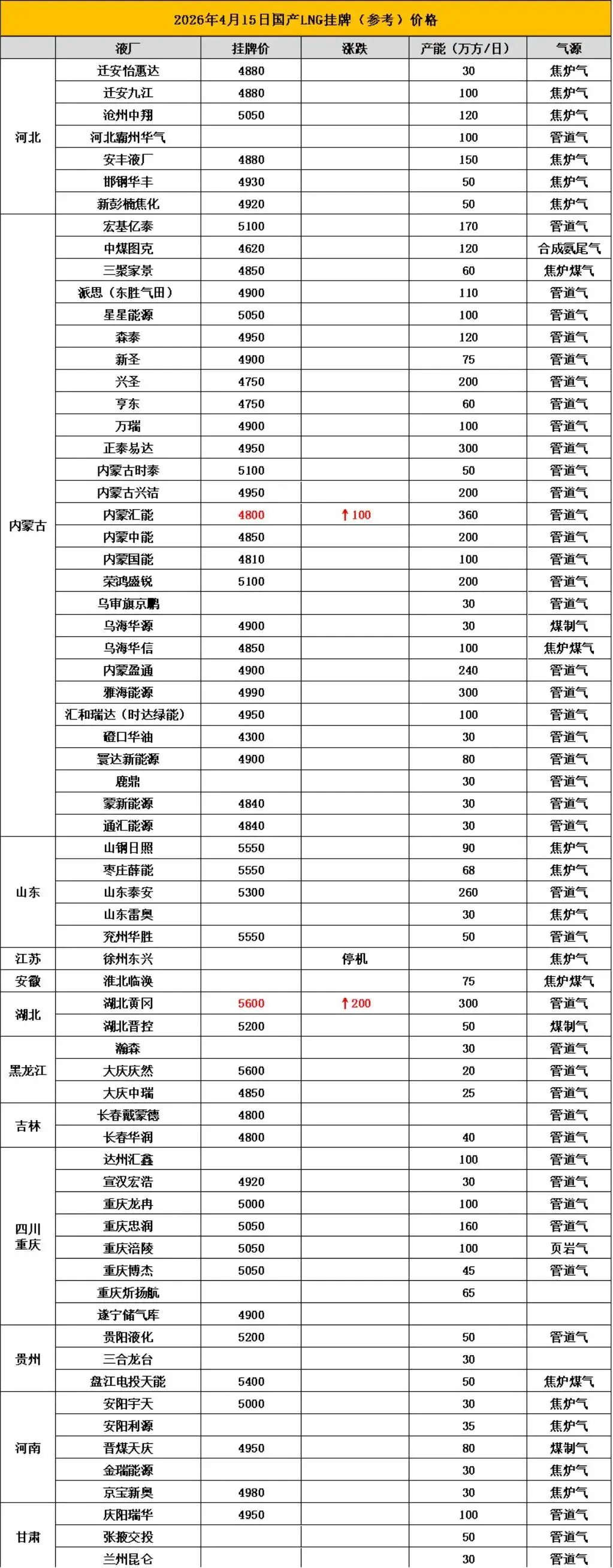 为了方便朋友们及时了解市场动态,掌握市场行情,把握市场机会。亿慧云天然气每天为大家提供行业新闻,国内LNG挂牌价格,本价格信息只做参考,具体提货价格请与工厂销售联系。(当天调价见底下留言)