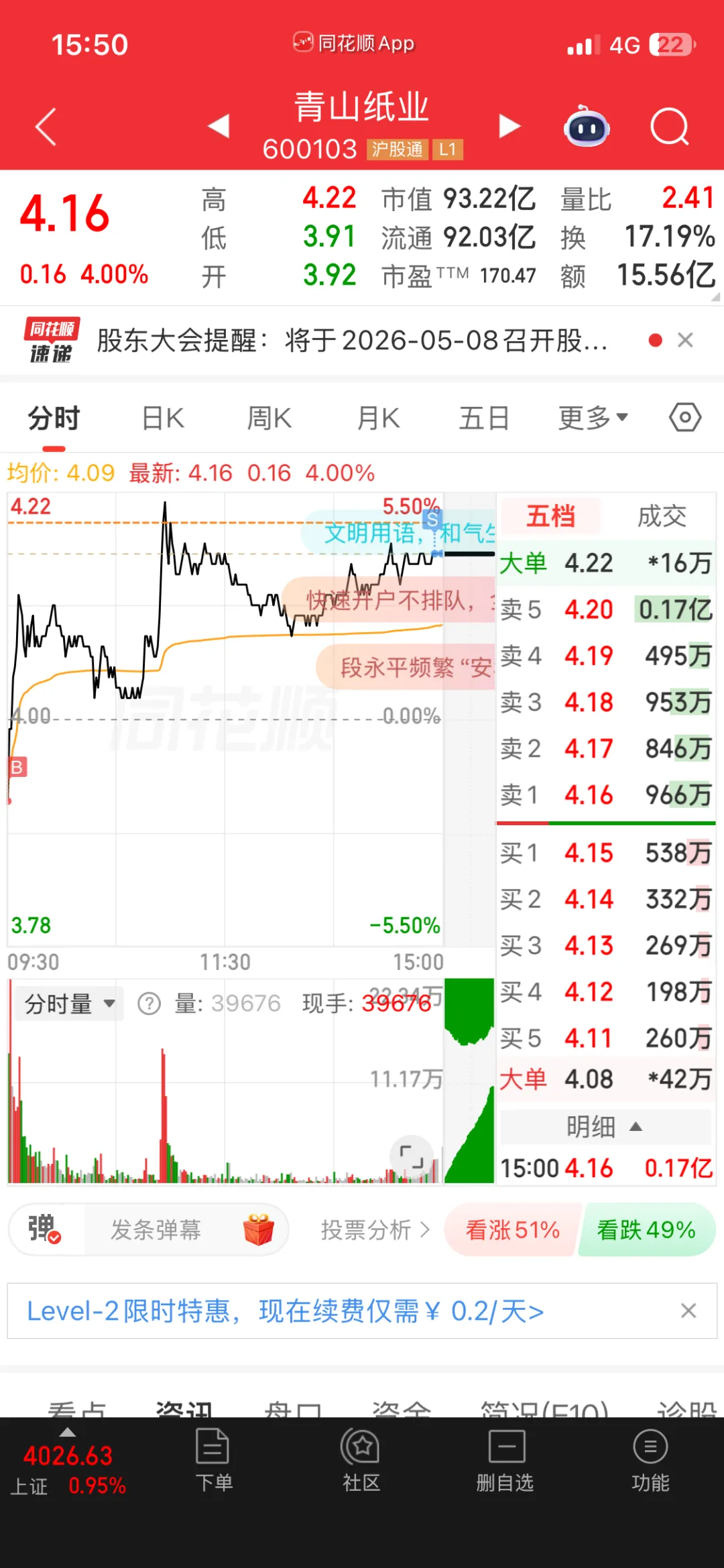 青山纸业:趋势仍在,高抛低吸,5日线上不言顶。