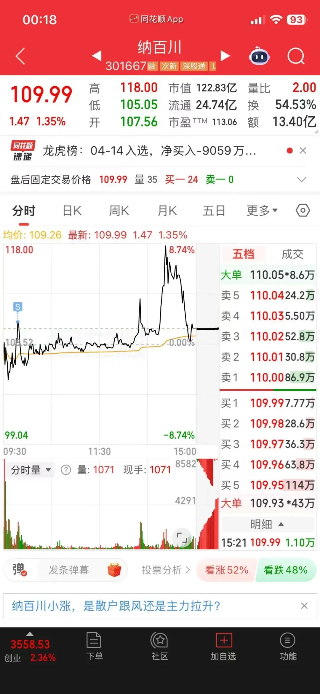 瑞斯康达:前面小编买过吃过肉,CPO+智算中心+高速光模块,2026年4月13日星期一,开盘前几个小时,人气飙升至第一名!直到9:33分左右还是第一名。题材和上涨逻辑明了,前两周就人尽皆知,辨识度高。看到买一下方全是大垫单,盘口强得可怕!到了4月14日星期四竞价强一致,高开太多了,被兑现!龙虎榜一出,又是量化基金和紫阳路做的,每天都是那三伙资金。预计明天小幅低开弱震荡小回升再回落。若低开太多,隔日套住量化基金,他们还会做T引导翻红