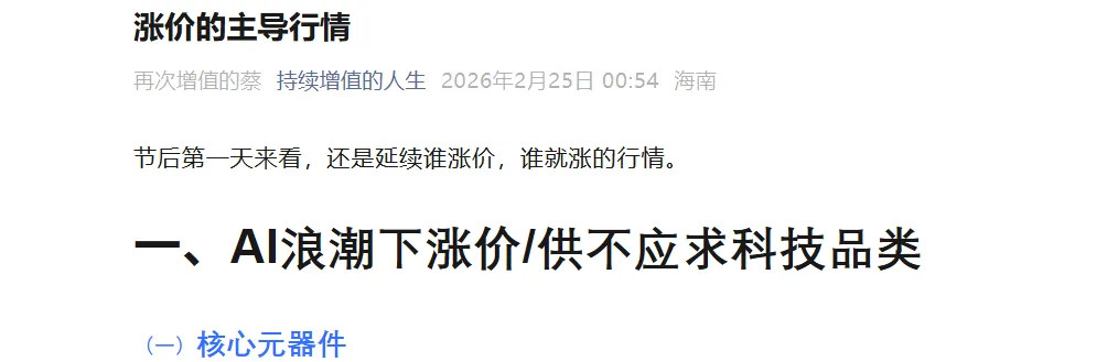 上篇提到目前美伊谈判期,无论谈成谈不成,美不再加大打击力度,基本就不会有大的影响。(只需提防其突然轰炸原油设施,如果只是其他的,那么局面就还是保持在可控范围内,因为若还是像之前一样维持轰炸力度和程度,没有涉及到重要命脉,战后恢复会很快。美一直十分克制,但是要防一手真的炸了石油设施,因此在21日谈判结束前也得每天盯着炸还是不炸)。当时也对原油进行了研判,原油周一高开了9%涨到105.6美元,这两天一路走低,已经在91附近了,一来一回还跌超了不少。。。。 因此这几天,全球又回归到了涨价主导的行情。而且因为这条线路是被美伊冲突突然之间斩断的,即被原油引起的高通胀对这些矿产预期的需求下滑而导致集体下跌,现在进入缓和期并且美国在没有下重手之前,就已经开始谈判,市场又集体转向,被压制的情绪和未来预期导向下反弹力度更猛,也更加迅速。 虽然很多矿都没回到以前的位置,但是AI这一块作为今后必须突破的行业,一直保持着很高的需求,无论打不打,AI就是下一轮生产力革命。所以一直对AI保持着高度的看好。目前来看,AI方面的存储,cpo和电子元器件的带领下,创业板走势十分强势,已经走出新高后继续冲锋,进入了稳定捞钱区已经5天。美股和韩存储反弹更加迅速而且持续时间更长。 但是不可忽视的“宁德时代”异军突起,这段时间宁德再次创出新高,在股价433.33,谐音位置上,今日依旧低开高走,虽未新高,但是个人觉得,不会像前几次那样长时间调整(第一次新高22年1月,第二次25年10月),即使回调估计很快就会回到继续爬升路线,冲击500关口。同时在锂矿涨价的基础上,这段时间“能源金属”这一块依旧保持强势,并且十分抢眼。 春节时已经对国内拥有定价权的产品进行了AI汇总。但是目前来看,其逻辑不是很完善,特别是对稀土的判断,忽略了市场规模不大、出口不多的事实。一直想着像韩国存储芯片、美AI芯片一路涨价,稀土会进行相应的反制,但是这两者市场规模是差距深远的。 互相的输入性通胀,需要产品有一定的市场规模。目前来看,相对于稀土,CPO和PCB等元器件的规模反而更大。类似的,目前在锂矿涨价的背景下,在储能电池,储能电芯、动力电池这一块,更具规模,且出口占比足够大。三、中国核心垄断赛道(超大市场、全球刚需、高出口)