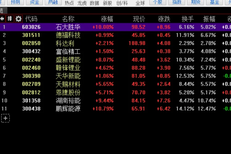 因此,从上面来看,储能电池、储能电芯、逆变器、动力电池(国内大头),硅都是大头,光伏这一块,国内也是大头并且原料价格一直提不起来,不是好选择,后续可以看看。目前来看,电池和储能电芯是一块大饼。这也是我看好宁德还会继续向上的原因。---目前,存储板块比较疯狂,CPO中际旭创这些也一路高歌猛进,暂时风险性有点强,后续回调再看。涨这么多了没跟上去过,那就继续克制吧。相对来说,电池这一块,依旧继续看好涨价,我觉得原材料,可能还会继续上去。鹏辉能源(300438):户储 + 大储电芯,海外占比 60%+,欧洲、澳洲、北美,ODM + 自主品牌双轮。------------------------------------------------------------------------只要没打,那么锂矿期货每天都蠢蠢欲动,本来就维持在一个比较平稳的位置,原油大涨的时候,相对来说其波动范围并不大,还是很坚挺的,因此,在这些个股里面,还有可以搏一个一季报,毕竟石大胜华,一季度赚了2个亿,就涨停了今天。------------------------------------------------------------------------只要不打,白银黄金跟着反弹,目前白银可能要冲击84美元高位,看看能不能先冲上81美元。