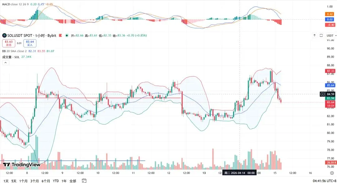 成交量多空都在放大,现在这个83/4u的位置流动性很强,可以适当做空。