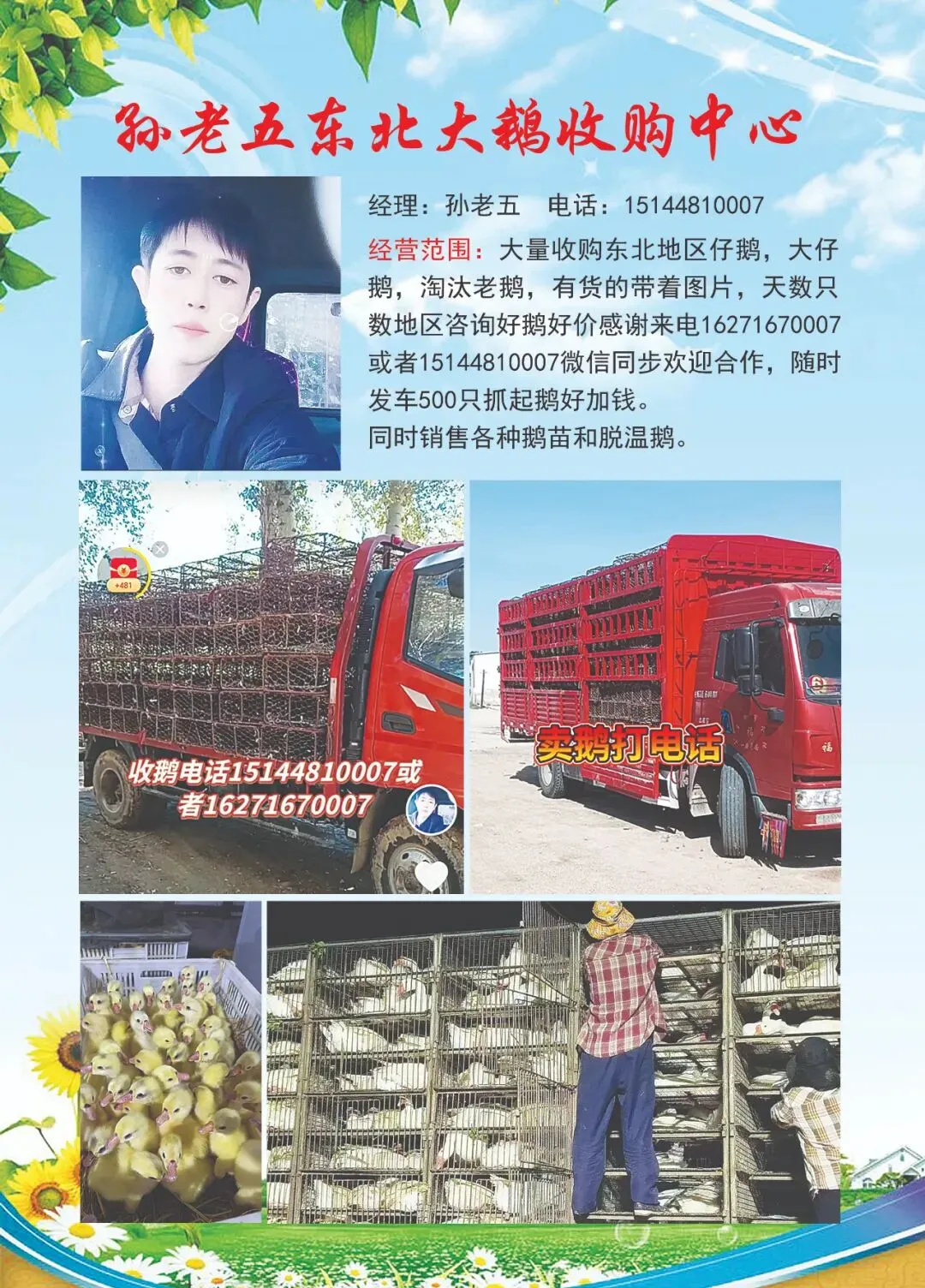 | 朱总 | 菏泽三省鹅业 | 13061581683 | 常年收仔鹅和淘汰老鹅 |