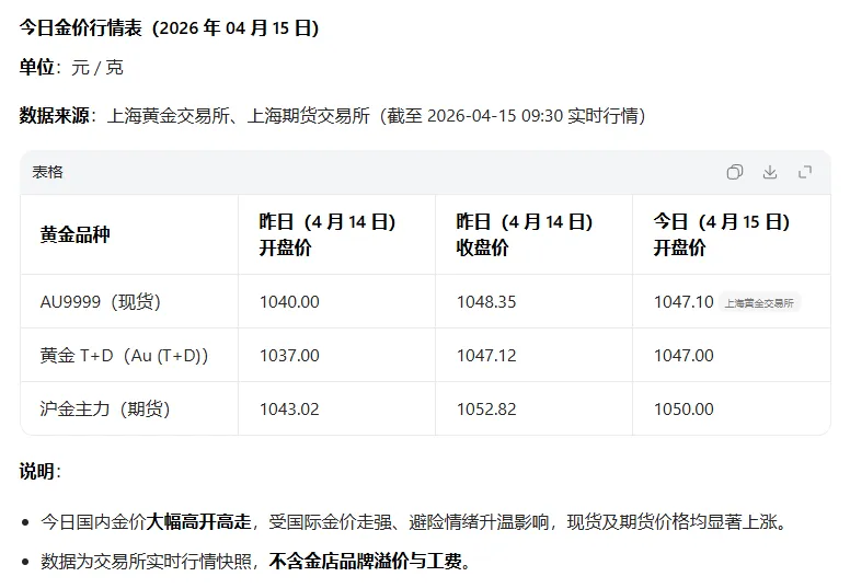 兑金通,20260415周三,今日金价行情