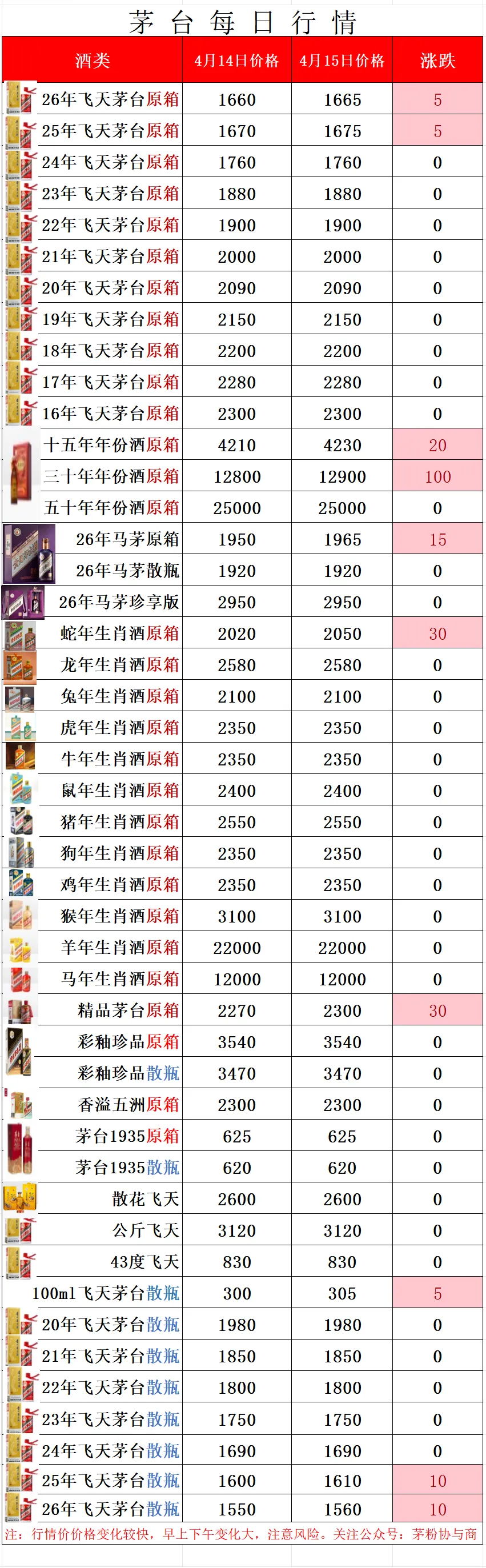 1.以上行情价格为酒商调货价,全国各地酒商调货价略有差异属正常现象!