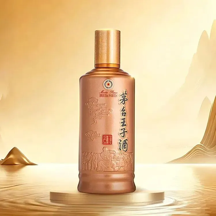 53%vol 500ml茅台王子酒(酱香经典)(2026版)主色调以哑玫瑰金替代原有亮金,更显沉敛;外盒采用朱砂红,绛金色渐变铺陈主视觉,温润雅致。纹样设计则完整保留如意形、云气纹等东方吉祥纹样,瓶身浮雕升级为优化版“源远流长图”。酒神、匠人、水纹、祥云相融,生动呈现酱酒古法酿造的匠心脉络。