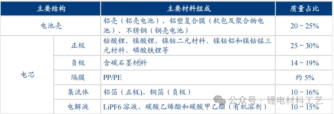 锂离子电池主要结构包括电池壳和电芯,其中电芯包括正极、负极、隔膜、集流体和电解液。