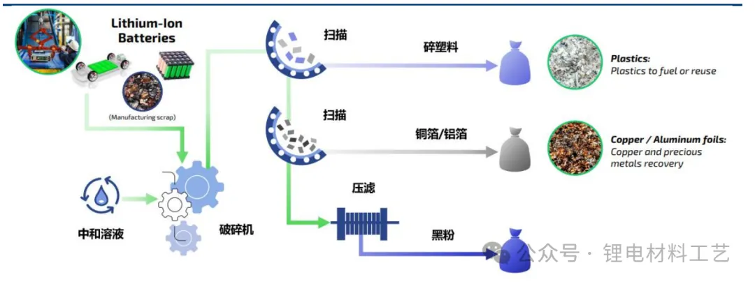 Li-Cycle 电池包——黑粉机械破碎拆解流程示