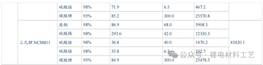 对于正极材料生产边角料的回收:总质量中 88-89wt.% 为正极活性材料、7-8wt.% 为乙炔黑导电剂、3-4wt.% 为有机粘合剂。
