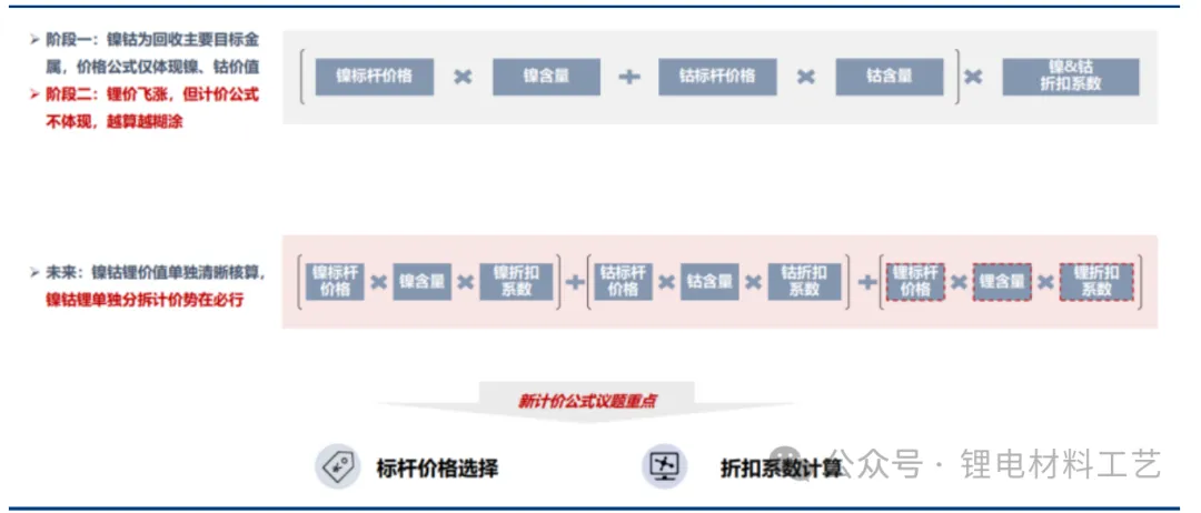 通过成本与收益的核算,目前锂电回收行业仍处于微利甚至亏损的状态;主要在于2022 年以来原材料端废旧电池包的高溢价。此前由于锂价较低,三元电池回收以镍钴为主,因此计价折扣系数仅体现镍、钴的价值;22 年锂价大幅上涨,为体现锂价值量,只能调高镍、钴的折扣系数;叠加行业参与者激烈争夺废旧电池包资源,电池包的折扣系数由正常情况下的 70-80%大幅飙升,最高超过 200%,与实际价值量水平存在较大偏差。