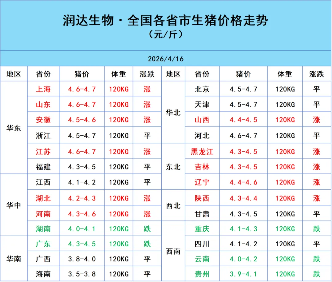 >2026年4月16日明日猪价行情:多地飘红,猪价牛气冲天!一片红来了!