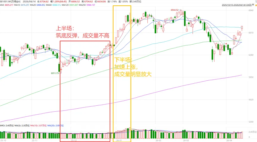 现在,当美伊局势明朗,市场上不再担心,并且随着行情的反弹开始乐观的时候,或许意味着行情将进入下半场。
