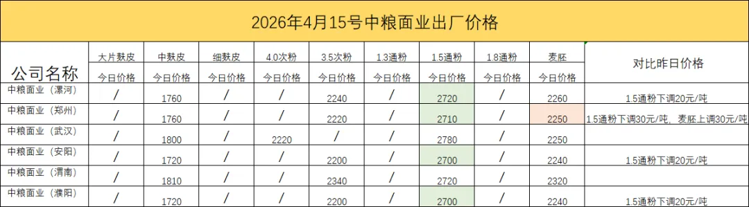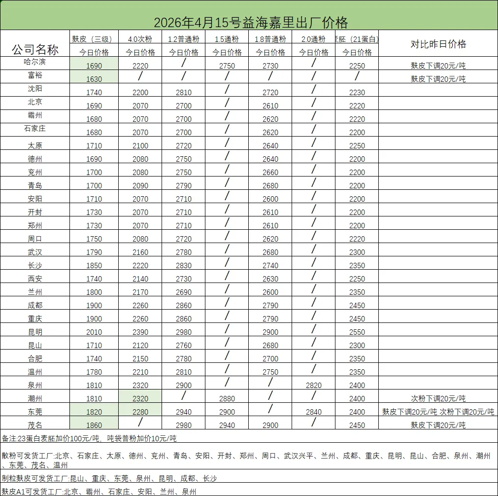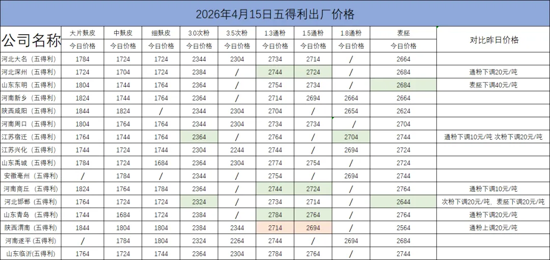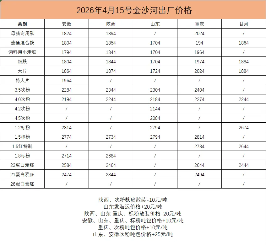 >2026年4月15日 小麦副产品行情播报