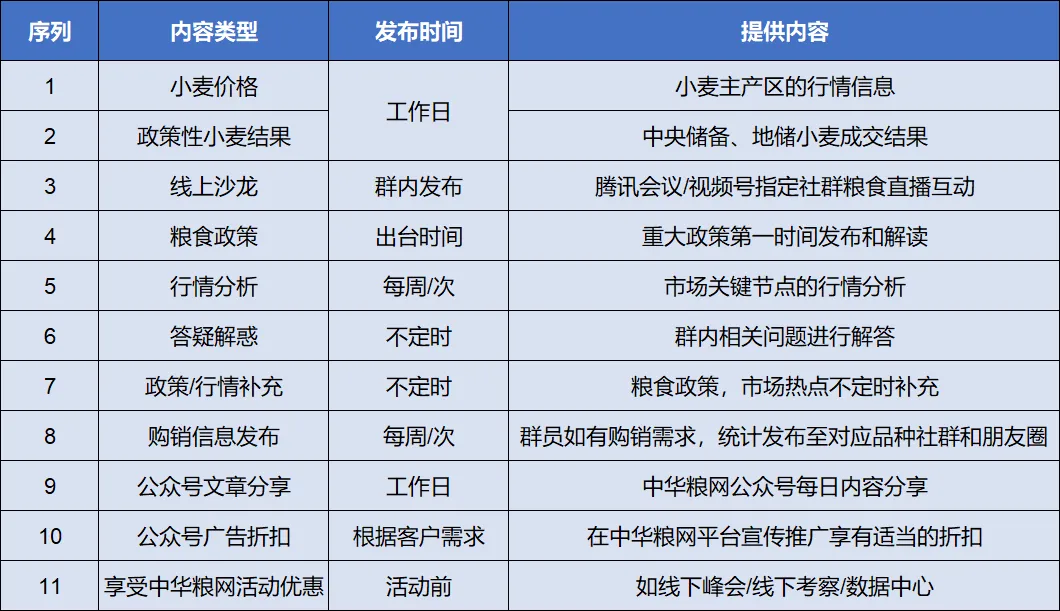 作为中华粮网新媒体团队精心打造的高价值付费社群,小麦高阶群为成员提供:
