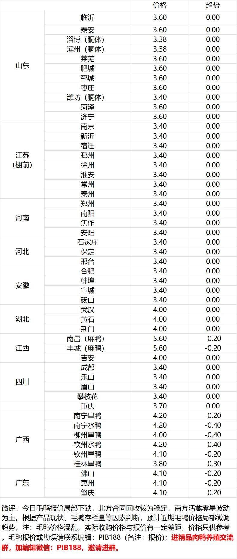 1、明日鸭苗(单位:元/羽)