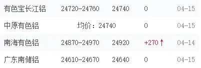 !今日铝价行情!铝锭现货价格(2026.4.15周三)