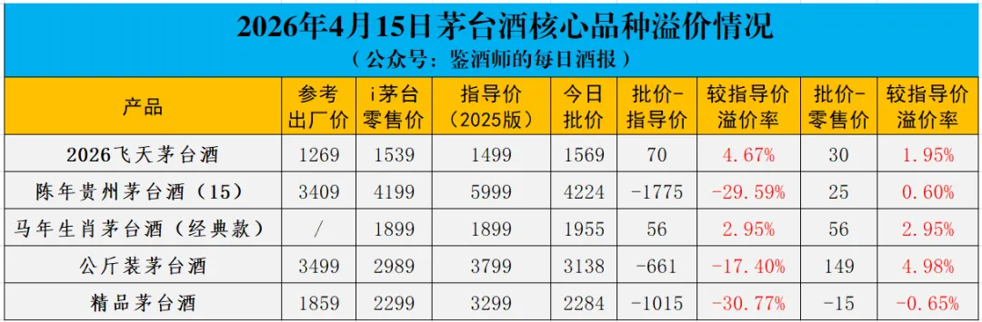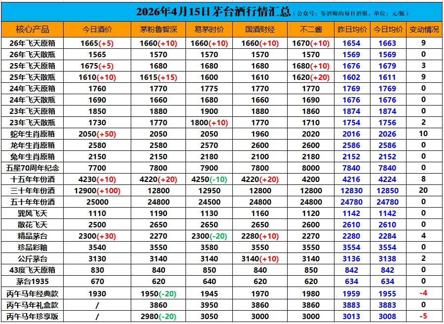 2026年4月15日茅台行情价格监测数据: