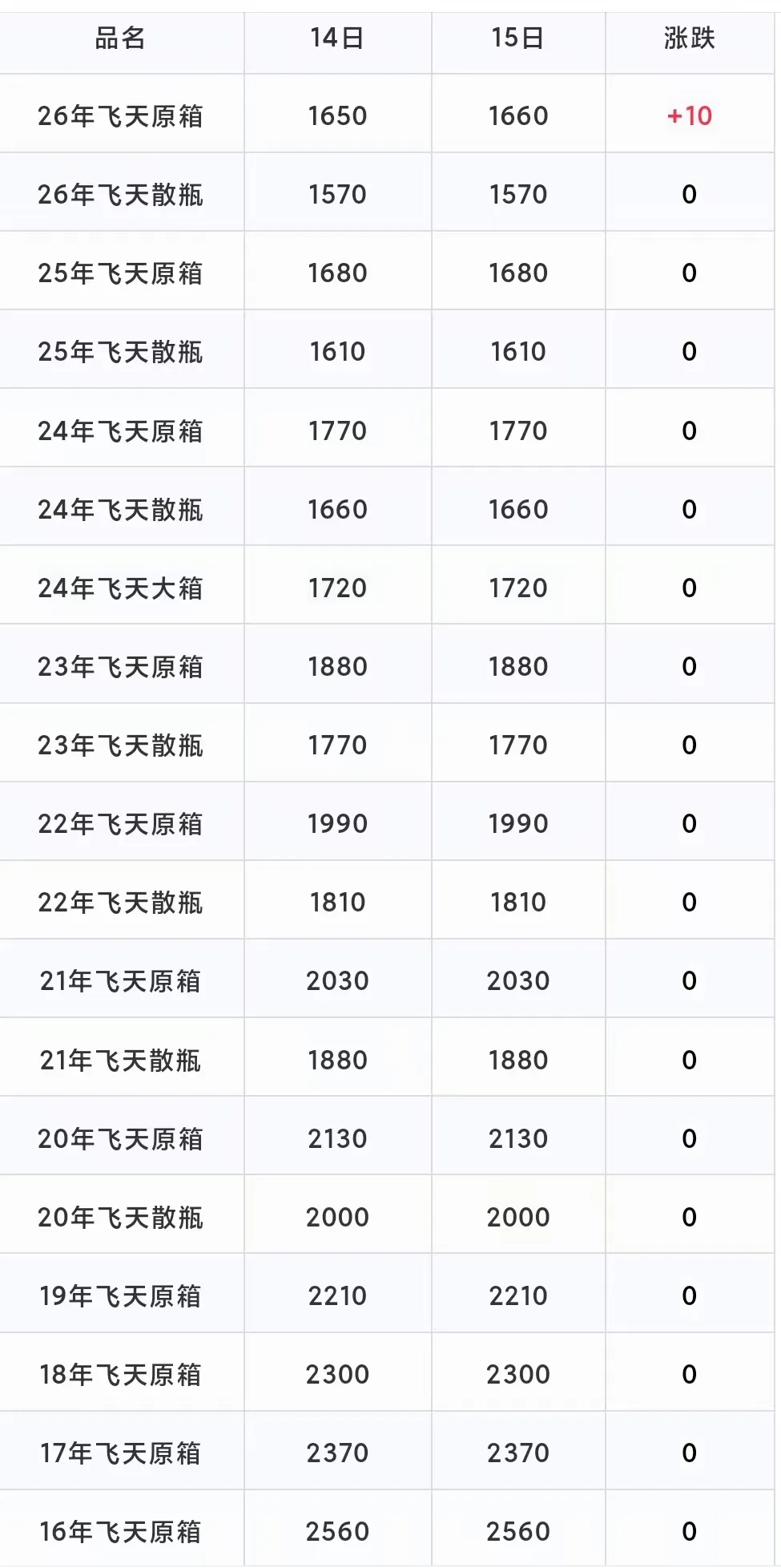 飞天上涨!4月15日茅台酒行情