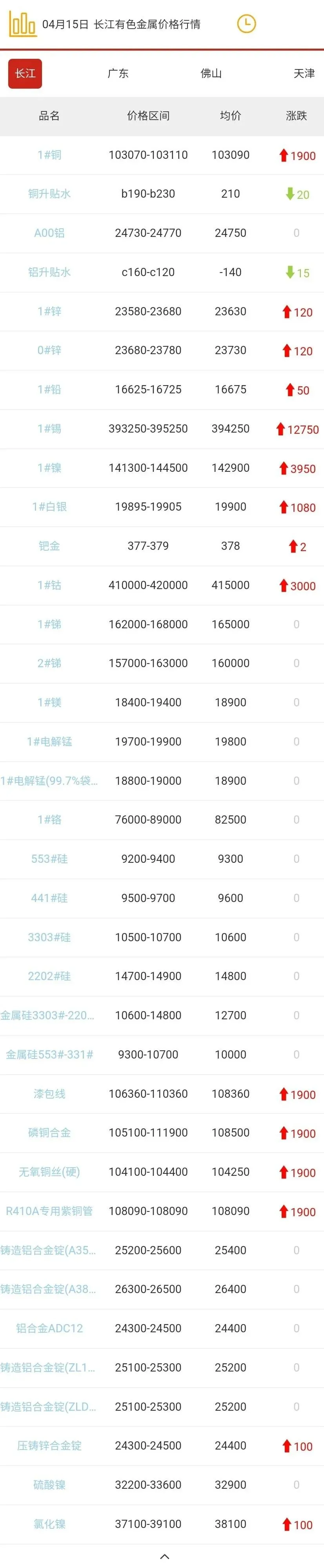 >2026年04月15日有色金属现货行情