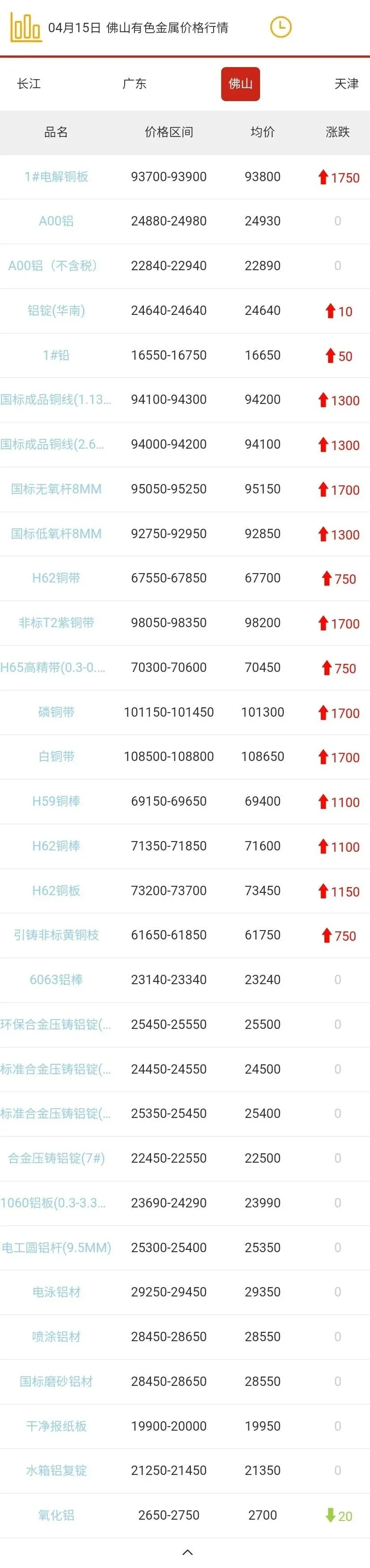 佛山有色金属价格行情