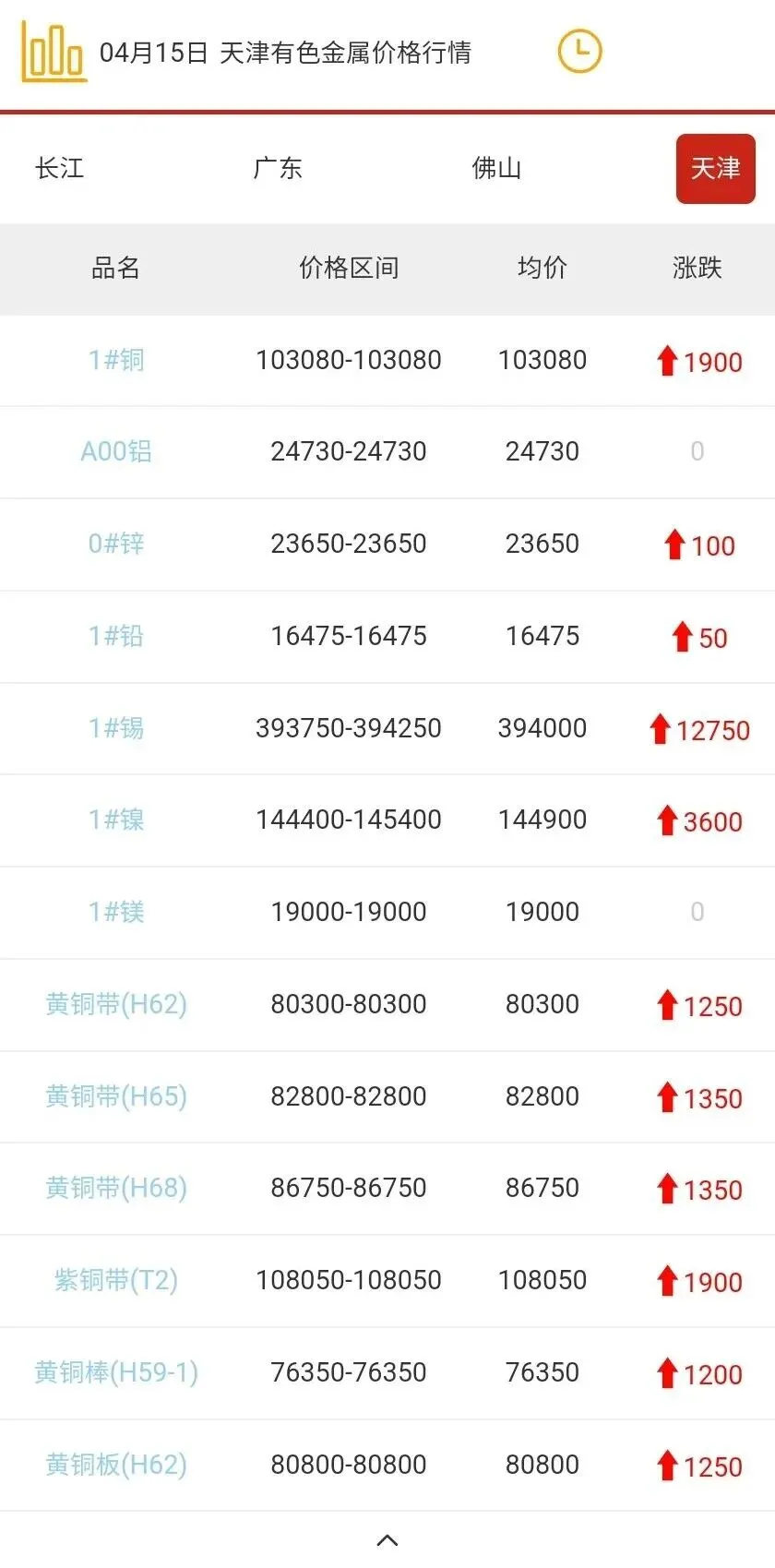 天津有色金属价格行情