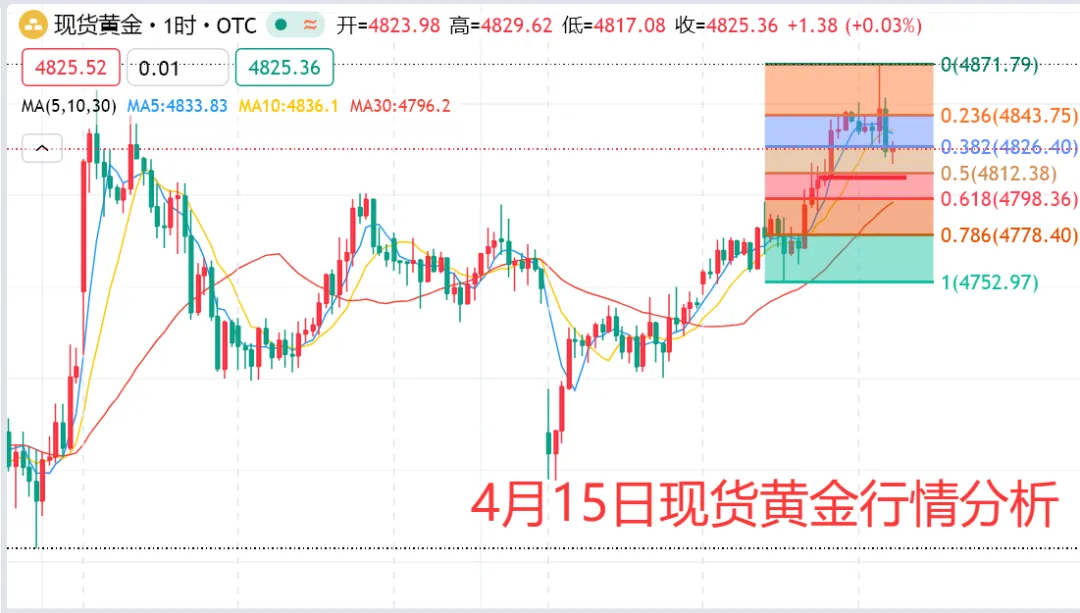下方前面小时线大阳线低点4809区域附近先小仓多,下方0.618位置4798区域再加小仓多,