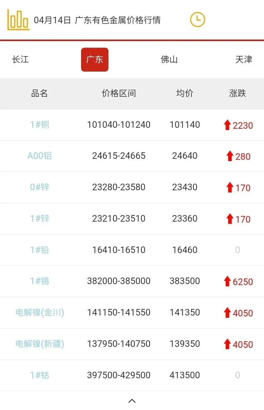 广东有色金属价格行情