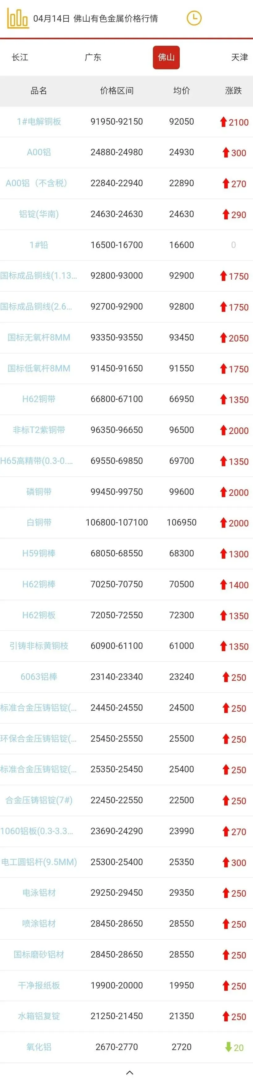 佛山有色金属价格行情