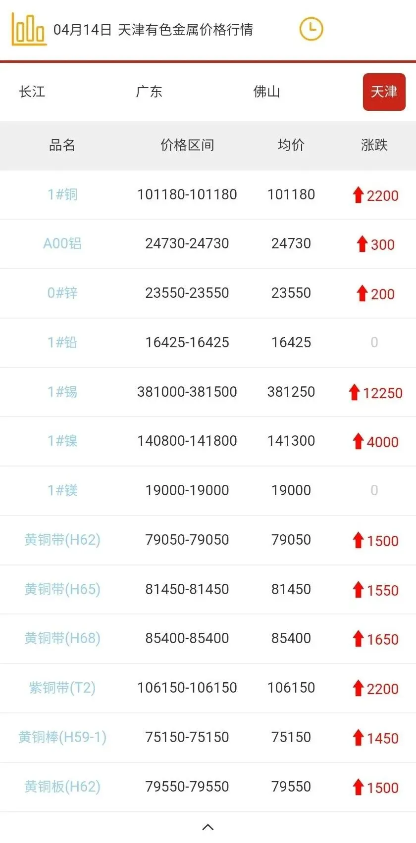 天津有色金属价格行情