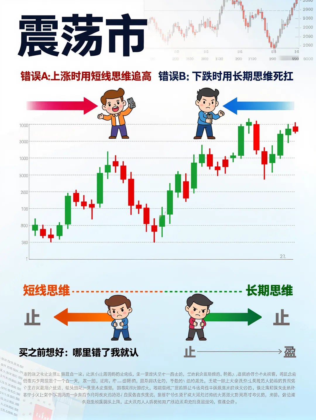 我这两天和几个老股民聊到一个很扎心的共识: 大多数人的亏钱,不是因为不懂公司,而是因为“在不该动的时候动得太用力”。 错误A:上涨时用短线思维追高 看到板块涨、看到热搜涨、看到群里喊“还能上车”,就想赶紧买一把。结果买在情绪峰值,第二天一回撤,就开始怀疑人生。 错误B:下跌时用长期思维死扛 一跌就告诉自己“我长期投资”,但真正的长期不是“不止损”,而是买之前就想好:哪里错了我就认。你会发现:很多人恰好把两套策略用反了—— 涨的时候当短线,跌的时候当价值。二、决定你账户波动的,其实是3个“开关” 如果你想让交易更像“体系”,而不是“凭感觉”,建议你每次下单前只问三件事: 逻辑:行业趋势、公司竞争力、估值位置、资金行为能互相解释 开关②:我到底做多长周期? 把持仓分成两类更清晰: 底仓(偏中长期): 能忍波动,但必须有基本面与仓位纪律 开关③:如果明天走势跟我相反,我怎么处理? 写一句就够: 交易真正的“高手感”,来自一句话: 提前把最痛的情况想过,真发生时就不慌。三、给普通人的一个“更稳”的小建议 如果你不想天天盯盘,又不想错过行情,可以试试这个简单组合思路:账户想做大,最关键的不是“抓到每一波”,而是少犯致命错误: 不重仓赌、不过度频繁、不过分依赖消息。