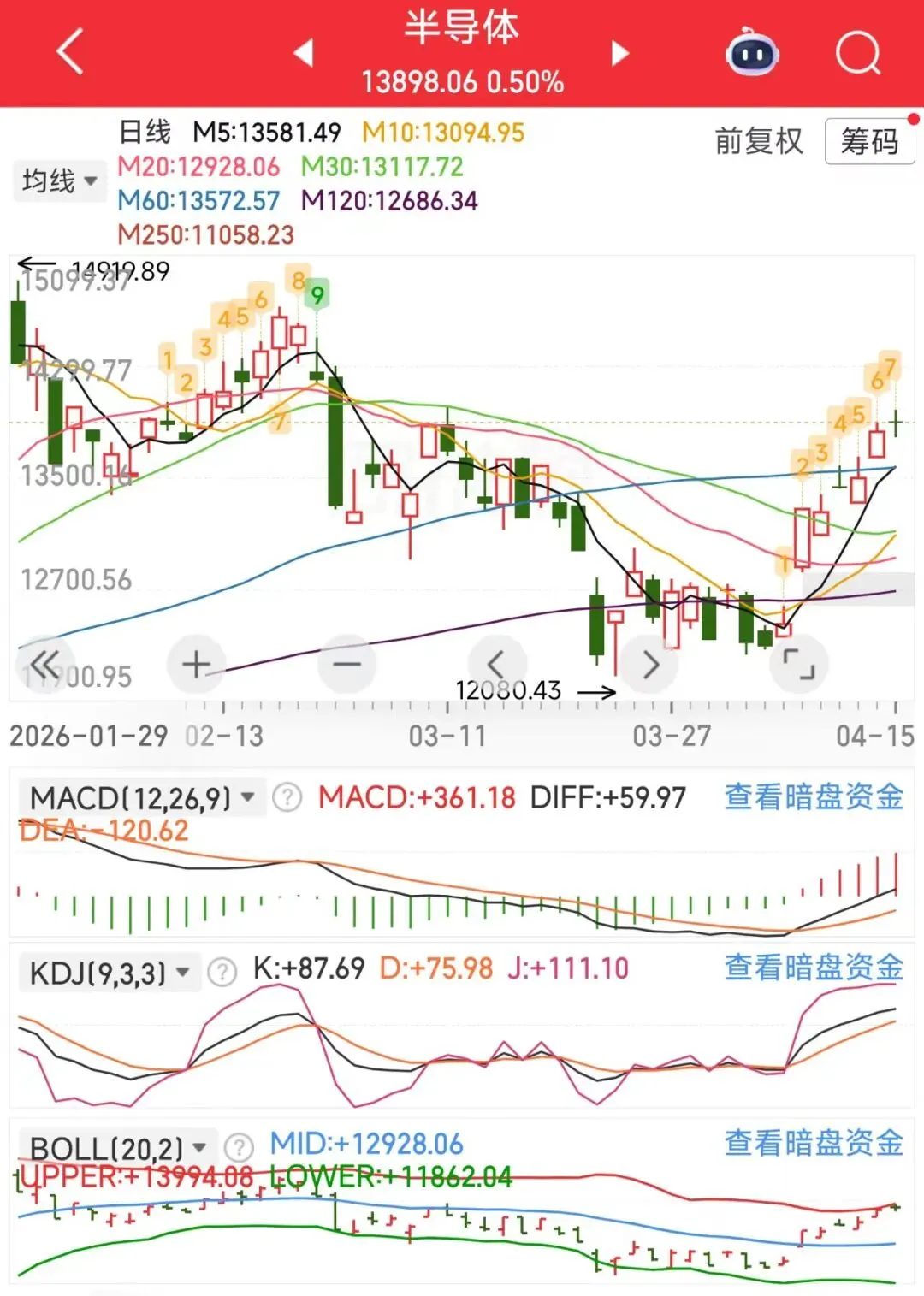 ·半导体:近期半导体板块走势强劲,相关企业密集调价,市场热度持续攀升。从国际大厂到国内龙头,涨价潮已席卷产业链各环节,反映出行业高景气度。技术面上,板块K线组合呈现连阳形态,短期均线多头排列,资金流入迹象明显,MACD与KDJ指标均释放积极信号,不过需留意,指数接近布林线上轨压力位,前期套牢盘或引发短期震荡。