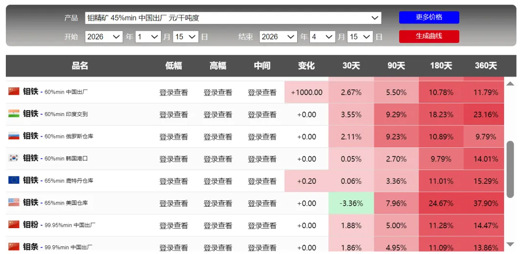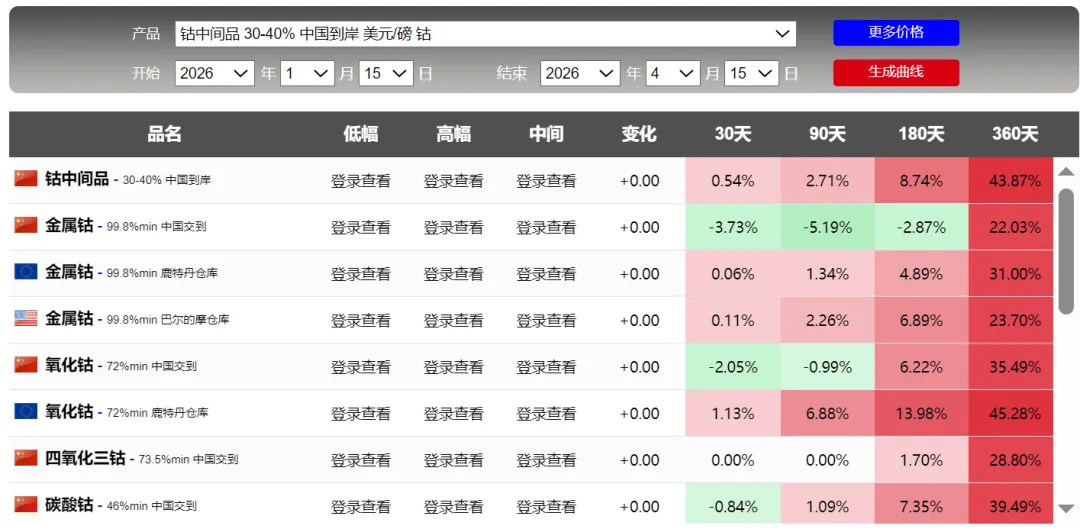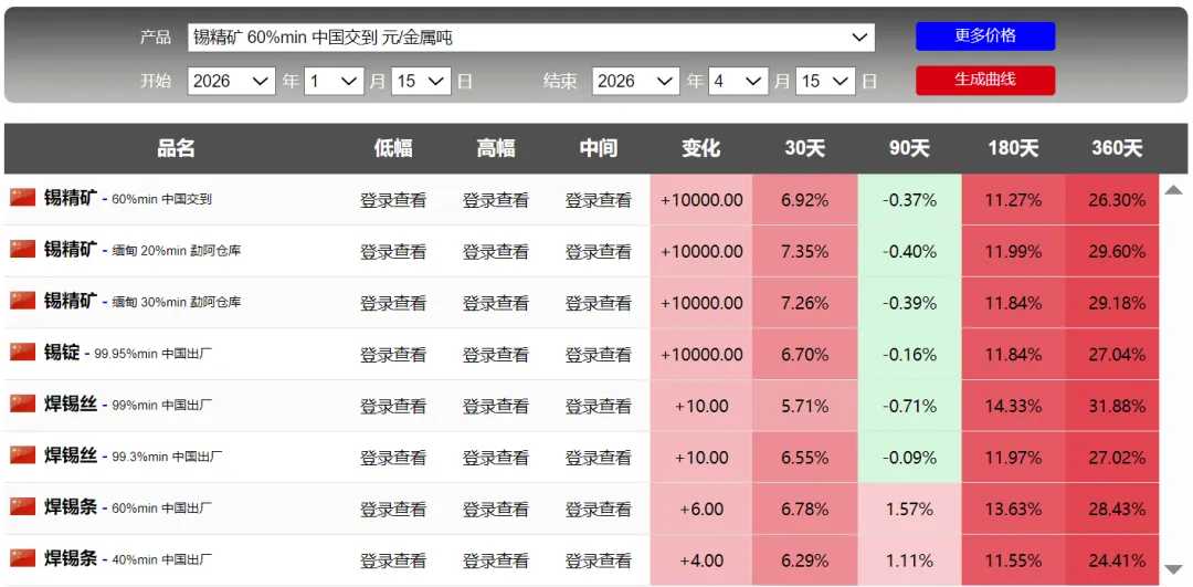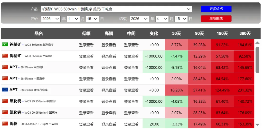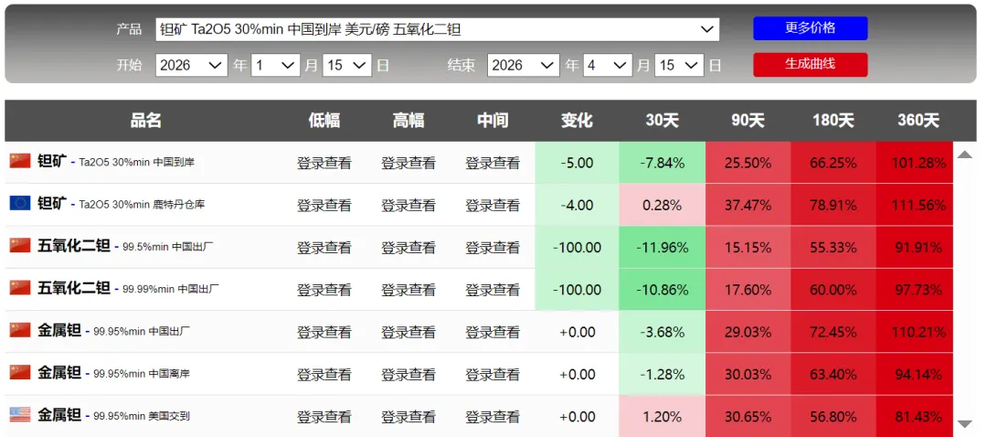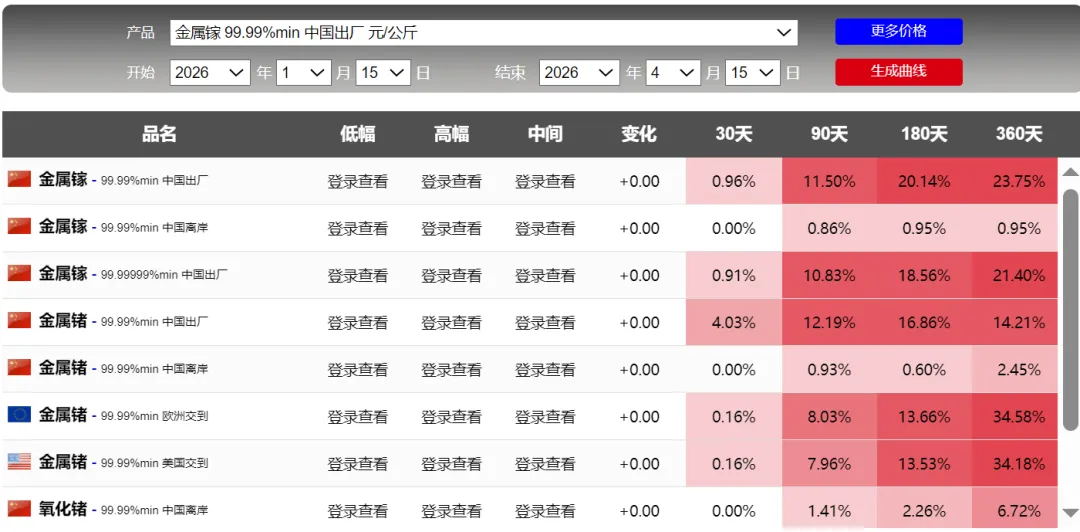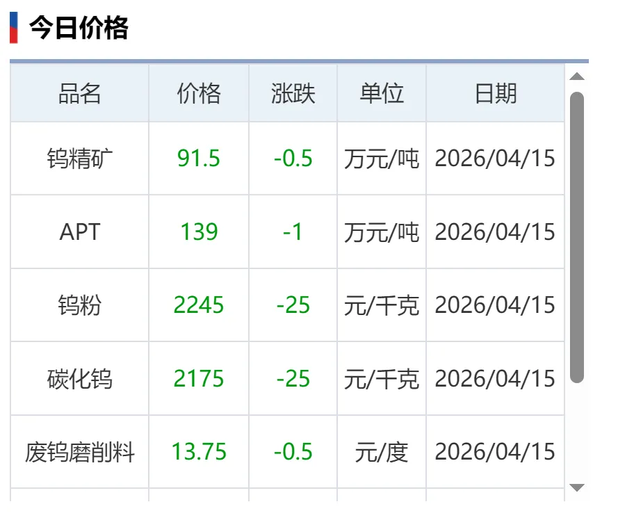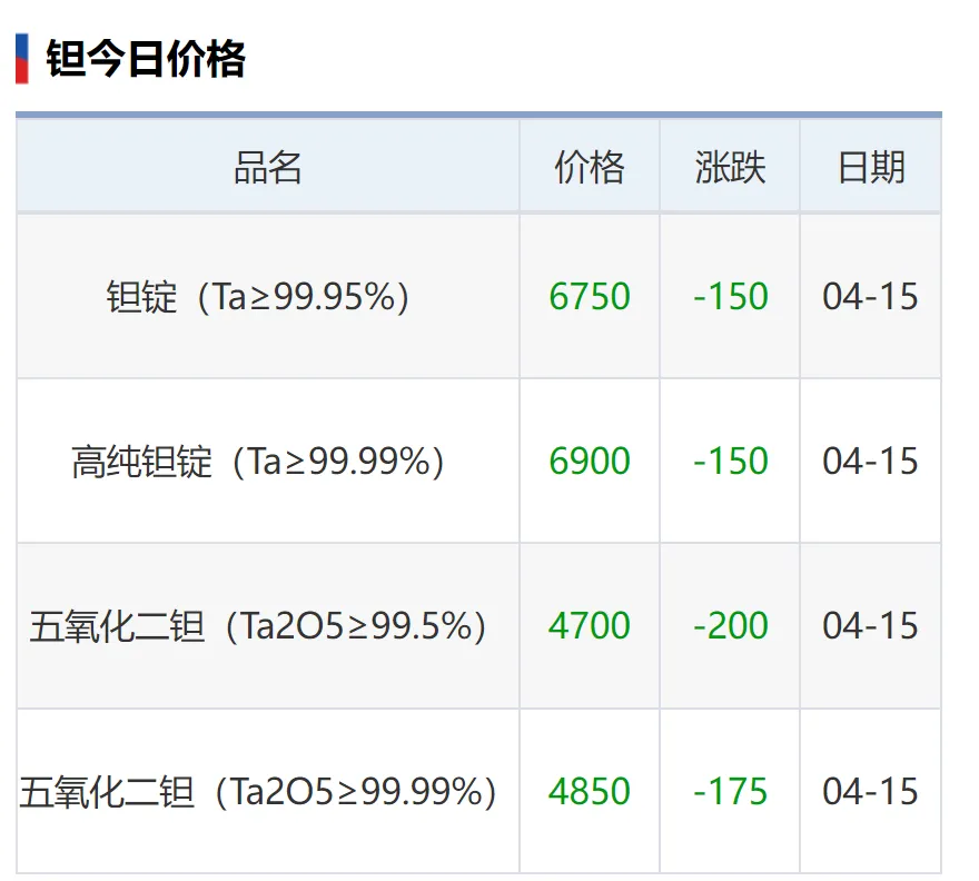 4月15日金属行情:贵金属、锗上涨,钨和钽回调